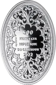 На аверсе монеты расположены надписи: «REPUBLIQUE DU CAMEROUN» — страна-эмитент, «500 FRANCS CFA» — номинал и «2022» — год выпуска.