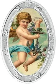 На реверсе монеты изображен чудесный рисунок очаровательного ангела . На реверсе красивая рамка с розами.