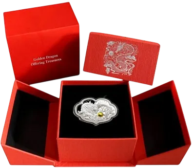 Серебряная монета 2023 года «Дракон Самоа, предлагающий сокровища» весом 2 унции поставляется в подарочной коробке, что делает ее фантастическим дополнением к вашей коллекции. Он также включает в себя сертификат подлинности, подтверждающий его качество и редкость. Эти монеты являются пробными экземплярами и имеют форму Жуйи.
